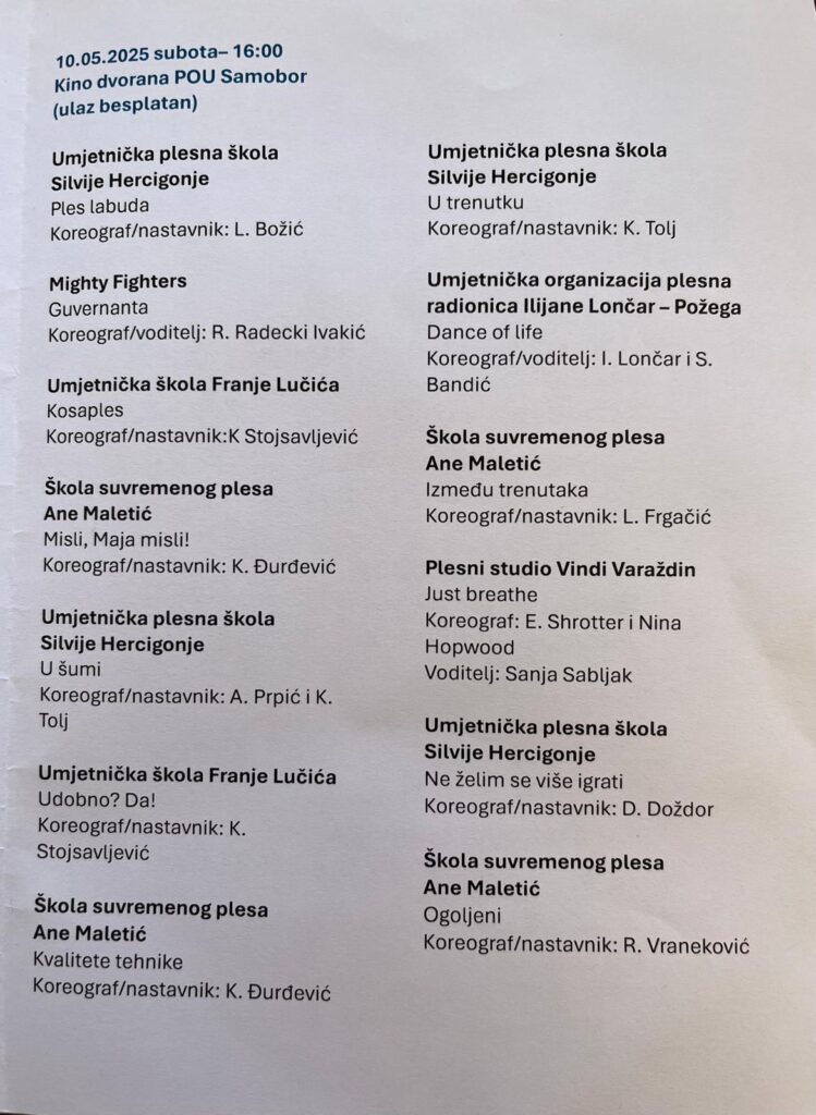 Učenici Škole suvremenog plesa Ane Maletić nastupili su na Danima plesa u Samoboru 10. svibnja 2025.